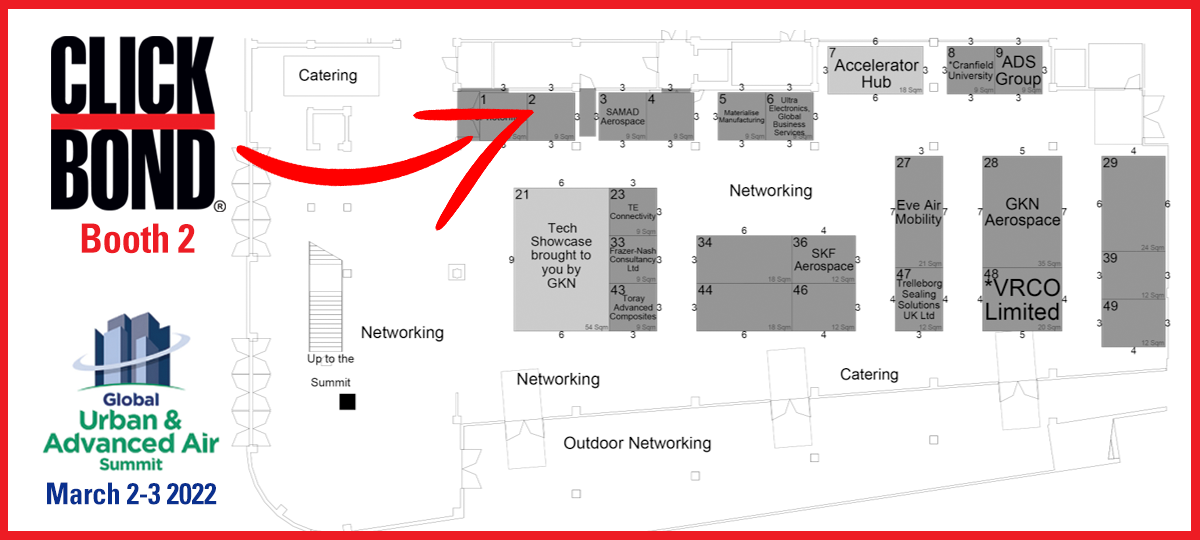 Connect with us at the Farnborough Air Show, July 18-22, 2022 - Hall 1, Booth 1058 and Hall 3, Booth 3730 (Fastavia, Ltd.) www.clickbond.com/fb22